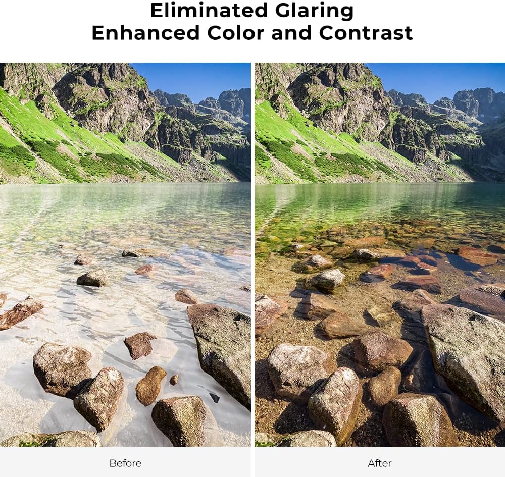 - 【Enhance Color & Contrast】CPL filter can enhance the color and contrast, and remove non-metallic reflections such as water, and glass to show the true color, especially used in white cloud and blue sky photography.