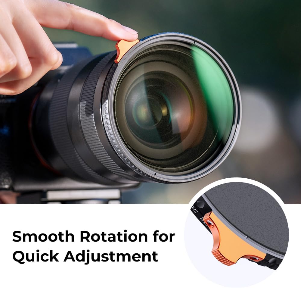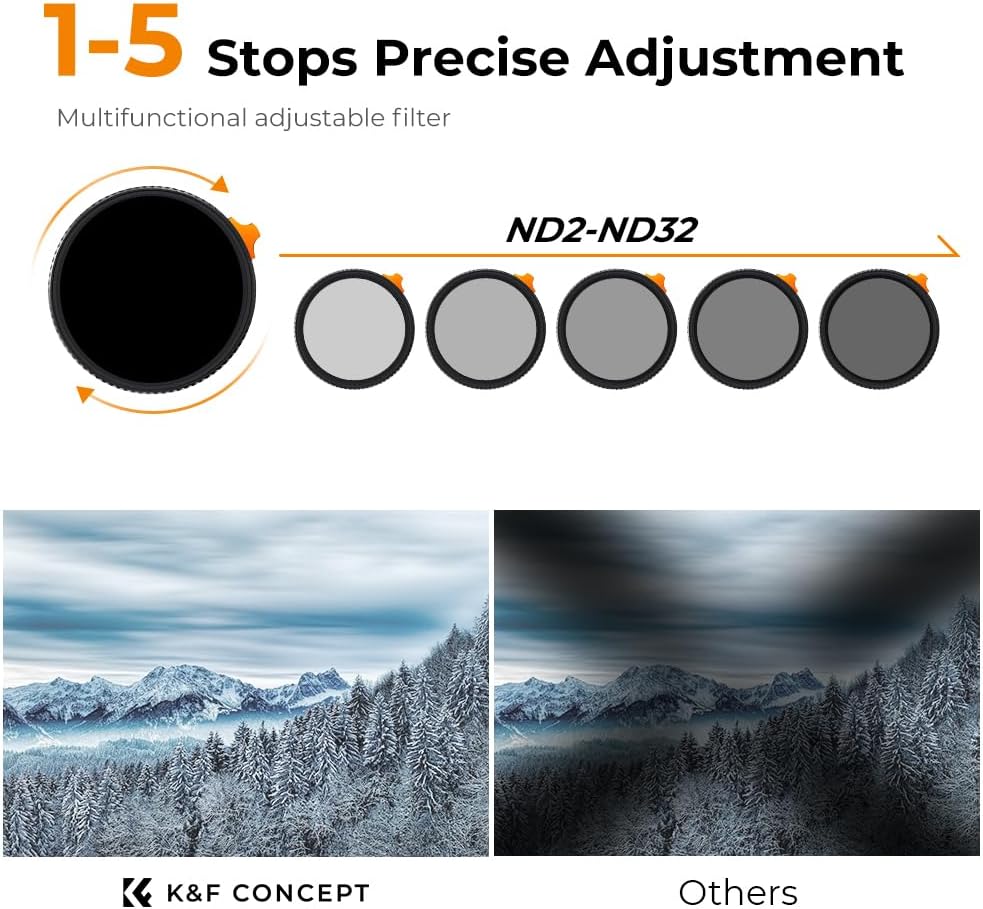 - 【No "X" Cross in Images】No "X" cross on images, K&F Concept utilizes frame-self locked technology to avoid this common issue on wide-angle lenses and variable ND filters. CNC-non slip frame helps install and remove the filter smoothly.